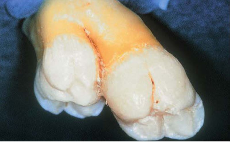 Răng có dạng hình bò, thân răng lớn và chân răng ngắn, xảy ra trên các răng nhiều chân.