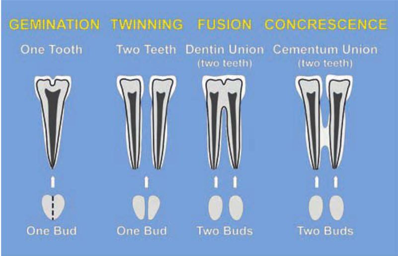 Xảy ra khi một mầm răng có khuynh hướng chia thành 2 răng, nhưng sự phân chia này không hoàn toàn.