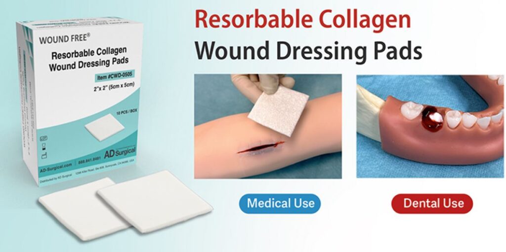 Các sản phẩm collagen có khả năng hấp thụ, có nguồn gốc từ bò và có nhiều dạng: tấm, miếng bọt biển, nút bịt (dành cho ổ nhổ răng) và dạng bột. Băng collagen giúp thúc đẩy cầm máu thông qua hai cơ chế: kích hoạt tiếp xúc đông máu và thúc đẩy kết tập tiểu cầu.