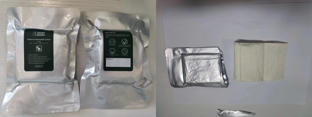Mặc dù chitin tạo thành phần lớn vỏ ngoài của động vật có vỏ nhưng chưa có báo cáo về phản ứng nào khi sử dụng chitosan ở những bệnh nhân nhạy cảm với động vật có vỏ. Chitosan mang điện tích dương và thu hút các tế bào hồng cầu mang điện tích âm tạo thành cục máu đông và bịt kín vết thương, thúc đẩy quá trình cầm máu.