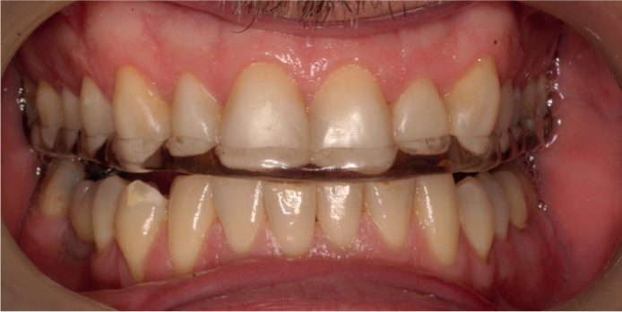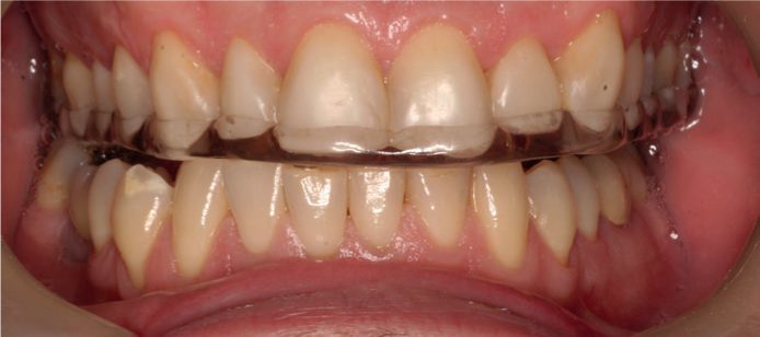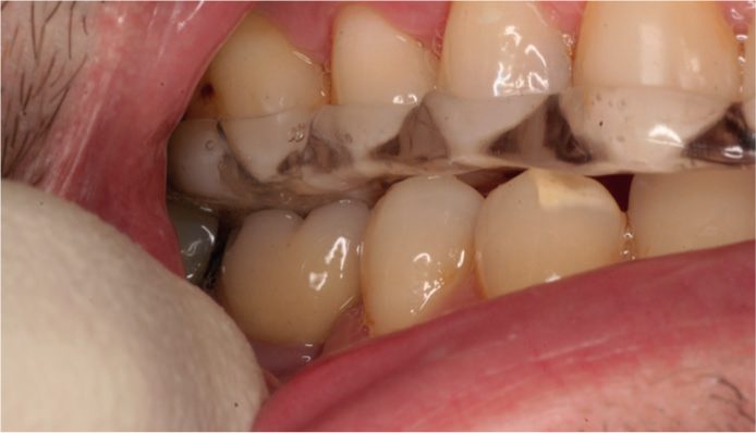 Máng cần được kiểm tra kỹ trước khi lắp vào hàm trên của bệnh nhân. Nếu máng chặt thì cần mài giảm các vùng bằng mũi cắt acrylic. Có thể sử dụng chất đánh dấu cắn như Occlude Marking Spray (Pascal Co Inc) để xác định cản trở. Nếu khí cụ có dấu hiệu hơi lỏng hoặc lắc thì có thể cần đệm lại vùng lỏng bằng nhựa acrylic nguội thích hợp ngay trên ghế.
