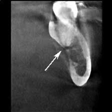 Vỏ xương phía lưỡi ở khu vực này có thể mỏng hoặc mất hoàn toàn. Do đó, lực quá mức hoặc đặt sai vị trí có thể làm bật các mảnh chân răng hoặc thậm chí toàn bộ răng vào hố dưới hàm gần đó.