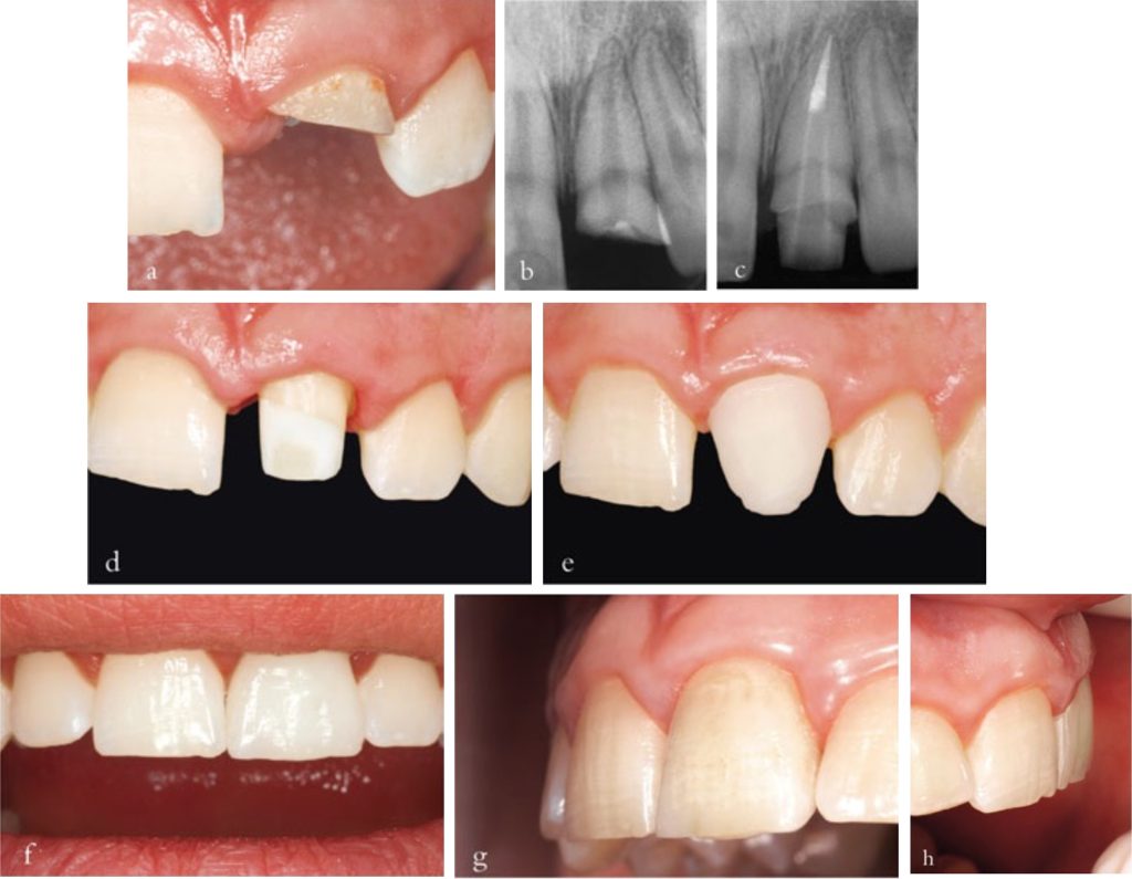 Mão bán phần bằng sứ hoặc composite hiếm khi được thực hiện cho răng trước đã điều trị nội nha.