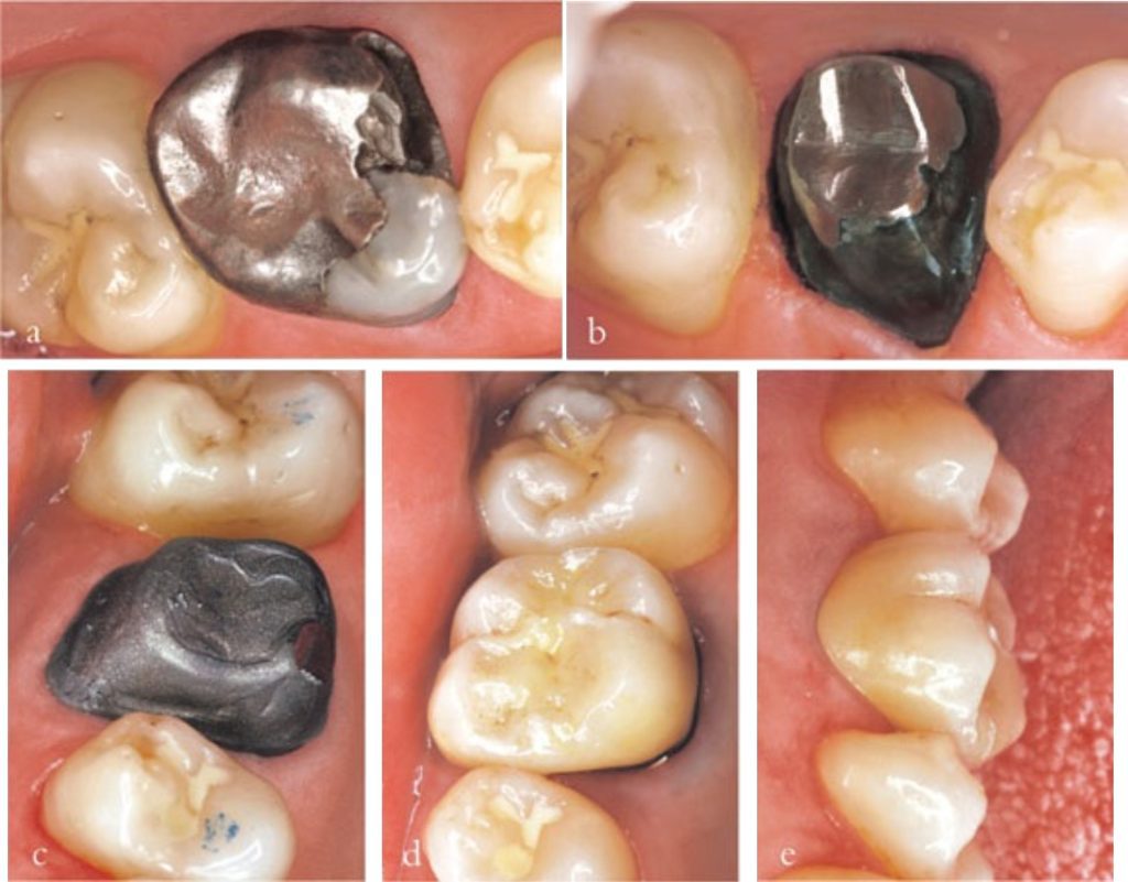Phục hồi amalgam với che phủ múi răng ít nhất 2 mm có chi phí thấp và đáng tin cậy, đặc biệt ở răng cối lớn hàm dưới (Hình 3-8), nhưng mối quan tâm về thẩm mỹ ngày càng tăng đã hạn chế việc sử dụng ở những răng quan trọng về thẩm mỹ, đặc biệt là răng cối nhỏ hàm trên.