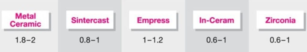 Mão sứ – kim loại vẫn là dạng phục hình gián tiếp được chỉ định nhiều nhất cho răng trước đã điều trị nội nha. Để đảm bảo thẩm mỹ, cần mài giảm mặt ngoài khoảng 1,8–2,0 mm (Hình 3-2 và 3-3).
