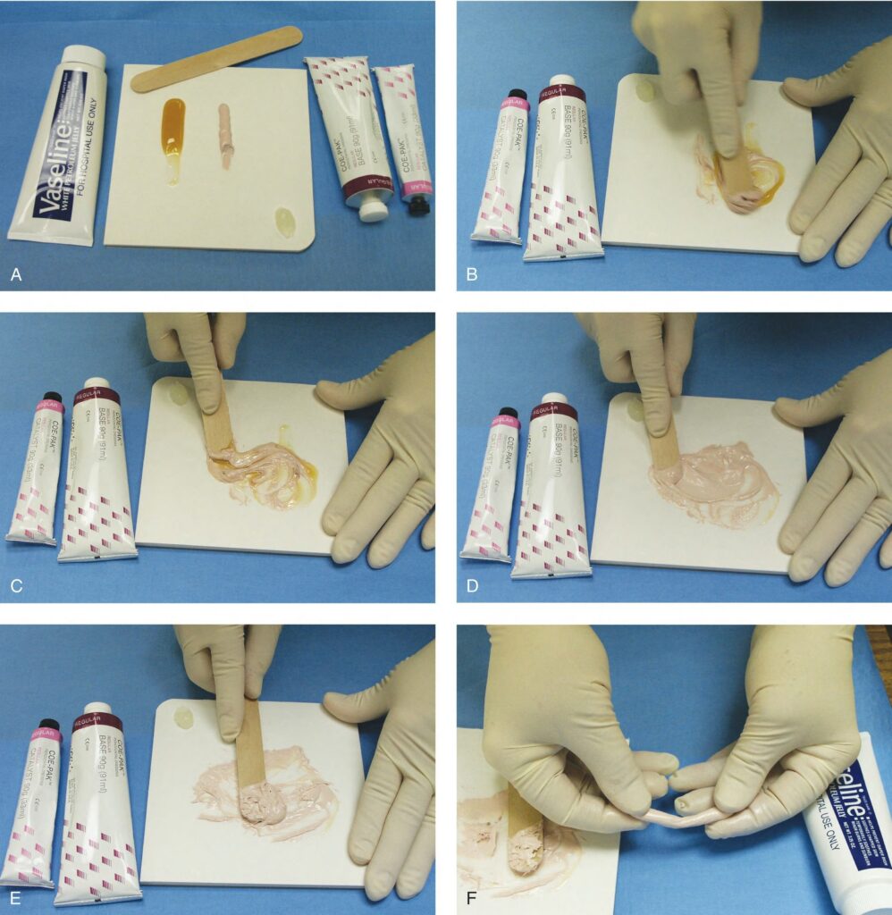 - Coe-Pak cũng được đóng gói dưới dạng vật liệu trộn tự động tương tự như vật liệu lấy dấu. Đơn giản chỉ cần đổ vật liệu trộn sẵn lên một tấm trộn và để vật liệu đạt được độ đặc phù hợp để sử dụng