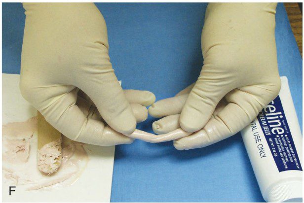 - Nếu vị trí phẫu thuật nằm ở vùng răng sau thì cuộn miếng băng bằng ngón tay được bôi trơn nhẹ thành một sợi dây có đường kính khoảng bằng cây bút chì.