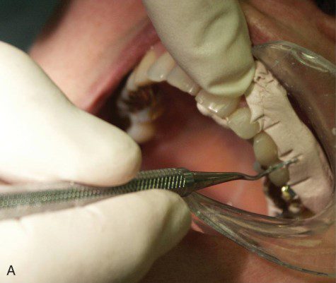 - Điều chỉnh các vùng tiếp xúc bằng dụng cụ nhựa hoặc mặt sau của dụng cụ nạo, như trong hình 33.3A.