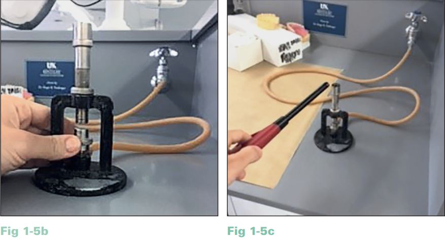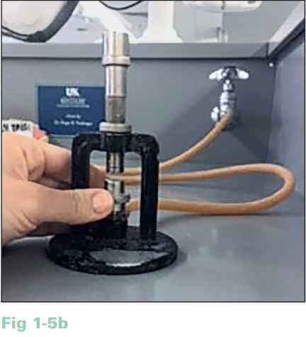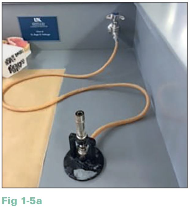 2. Điều chỉnh núm vặn gas nằm dưới đèn để có luồng khí vừa phải và xoay tay vặn ở đế đèn để luồng khí gần như tắt hoàn toàn(H1.5b).