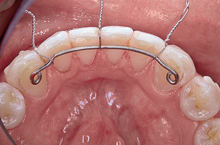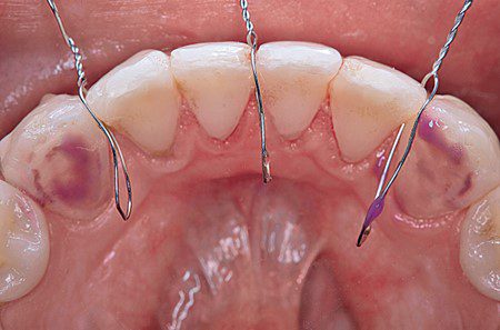 Hình 25. Dây duy trì được cột cố định và ổn định phía trên cingulum các răng bằng dây buộc kẽm.