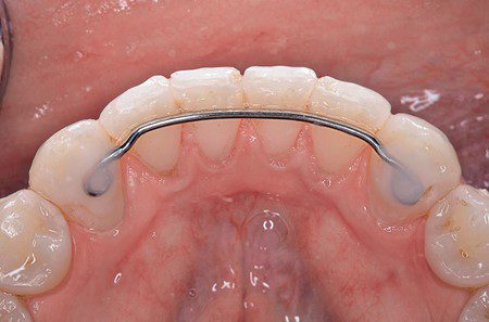 Hình 27. Dây duy trì chỉnh nha mặt trong được gắn hoàn chỉnh.
