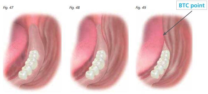 Sự bịt kín hoàn toàn ở viền sau hàm giả được thiết lập khi lưỡi tiếp xúc với niêm mạc má phía trên vùng gối hậu hàm lúc ngậm miệng (hình thành điểm BTC – Buccal mucosa – Tongue Contact).