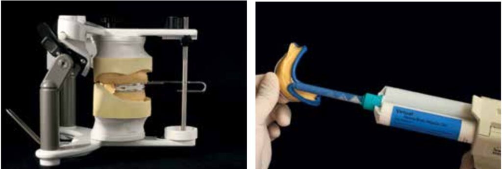 - Gối sáp (wax rim) hoặc giá đỡ (jig) gắn dụng cụ đo Gnathometer M cần được đặt ở trung tâm sống hàm hoặc vùng trung hòa (neutral zone) theo chiều ngoài-trong để đảm bảo cân bằng cơ chức năng và ổn định hàm giả.