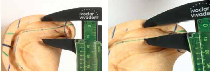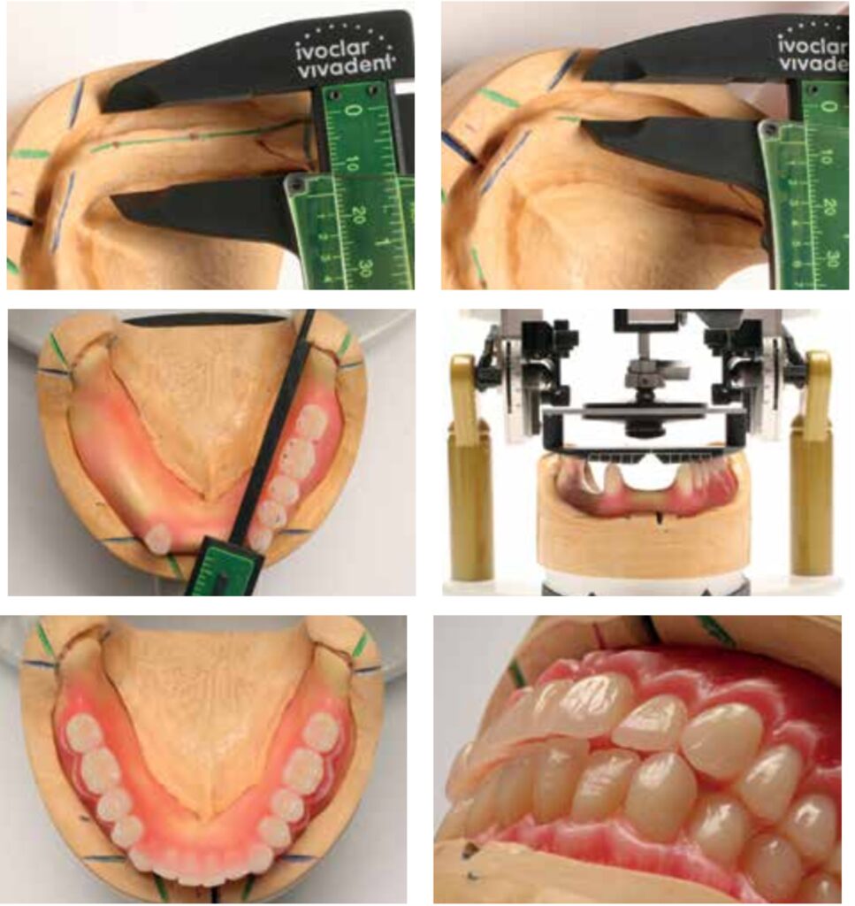 Đo khoảng cách giữa điểm thấp nhất của bờ ngoài (má) và bờ trong (lưỡi) của sống hàm, sau đó, đánh dấu điểm giữa của khoảng cách này trên mẫu hàm.
